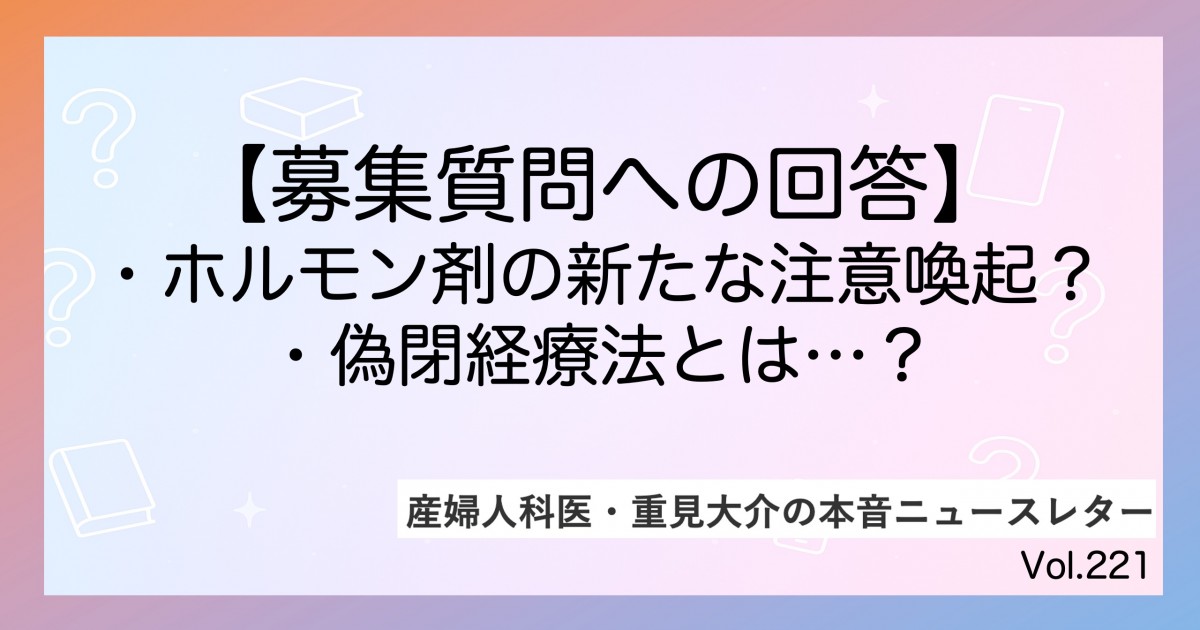 【募集質問への回答】子宮頸部内視鏡、出産時の会陰切開、家庭での性教育の在り方