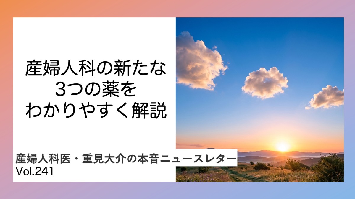 本ニュースレターでは、女性の健康や産婦人科医療に関わるホットトピックや社会課題、注目のサービス、テクノロジーなどについて、産婦人科医・重見大介がわかりやすく紹介・解説しています。「○○が注目されているけど、実は/正直言ってxxなんです」というような表では話しにくい本音も話します。