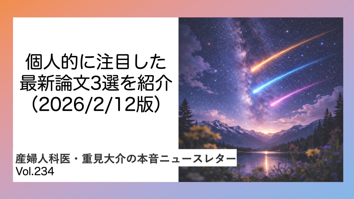 こうすることで、私が目を通している研究を共有でき、論文概要がわかり、産婦人科医視点での解釈を知れ、私個人としてお伝えしたいメッセージを読んでいただけるかなと。
