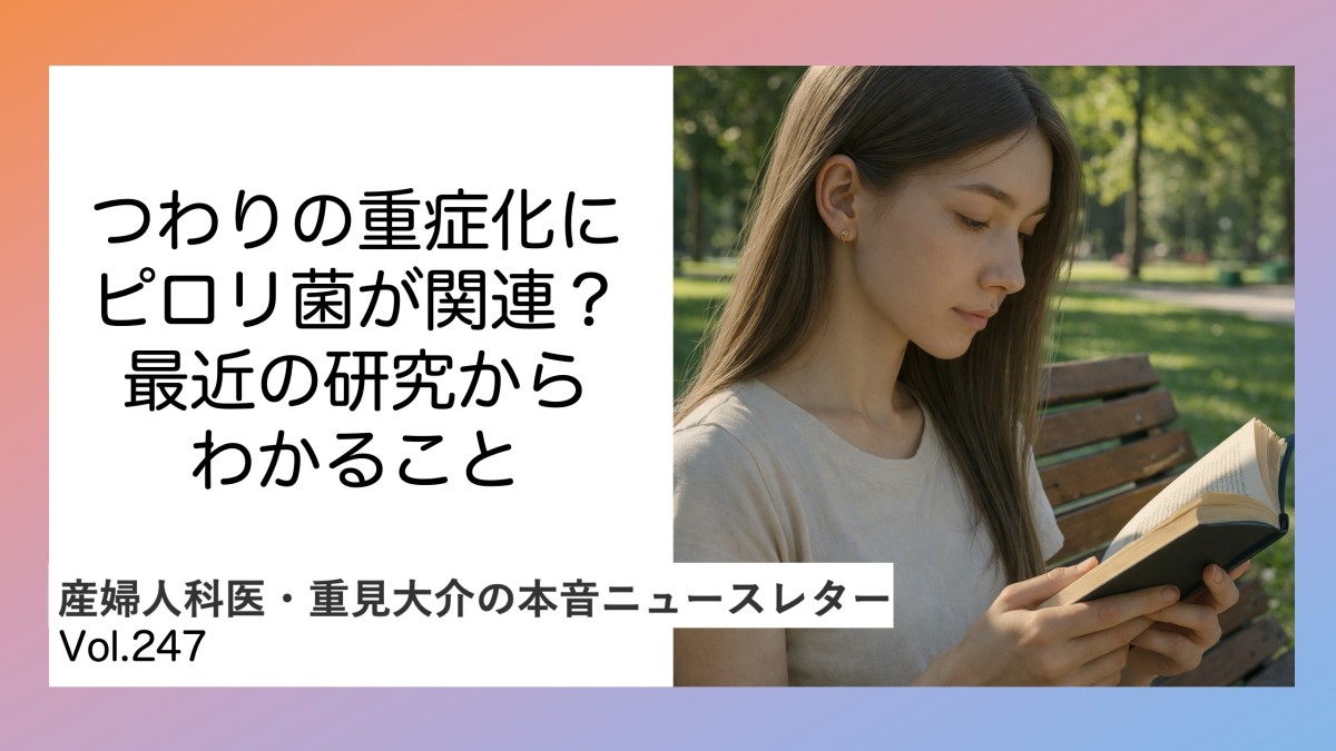 今回は最新の論文をもとに、つわりとピロリ菌の関係を、産婦人科医の視点からわかりやすく解説します。
